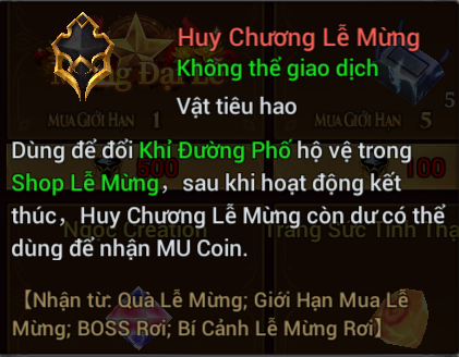 Nội dung: Sử dụng vật phẩm Huy Chương Lễ Mừng để đổi thưởng giới hạn.